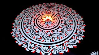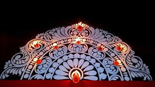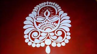 Diwali alpona design for beginners/ Round diya rangoli designs/ Diya alpona design/ kali puja alpona