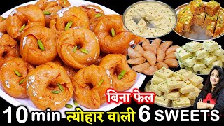 बिना फेल थोड़ी समान से 6 सबसे आसान मिठाई- त्योहार मे चार चांद लगा देगी| 6 EASY Diwali Sweets Recipes