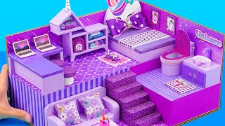 DIY Miniature House #90 Can You Build a Purple Unicorn Miniature House from Cardboard? Find Out Now🦄