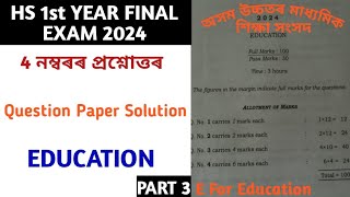 Hs 2nd Year Final Exam 2024 Education Question Paper Solution/ AHSEC Question Paper Solution/ Part 5