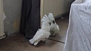 Cockactoo dance #moluccancockatoo #umbrellacockatoo #birds #whiteparrot #cockatoolife #whitecockatoo
