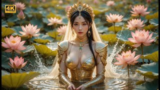 Golden Queen in Lotus Pond 🌸 Fantasy Royalty | Ethereal Beauty and Power | Mythical Empress Vibes"