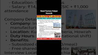 Need Factory Helper Howrah #jobs #youtubeshorts #trending #youtube #factoryworker #factoryhelperjobs