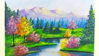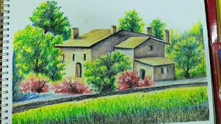 Oil pastel drawing/beautiful Autumn scenery drawing/Easy Oil pastel drawing techniques /Step by step