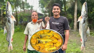 Giant Whole Fish Bhuna | Desi Style Full Fish Roast & Taste Tuna Fish Cutting and Cooking in Village