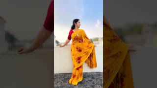 :🌸 Light Blue Floral Saree with Black Dotted Blouse | ✨ Relaxed Look & Gold Bangles | 🌺 Outdoor Vibe