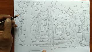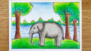 Elephant Drawing | Elephant scenery drawing |How to draw an Elephant in forest |Easy elephant drawin