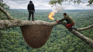 Lucky enough to stumble upon a giant beehive at the end of the year, harvesting dangerous wild honey