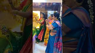 स्टँडच्या गौरीला समोरून काष्टा साडी कशी नेसवायची 🧿#gouri #gourisareedraping #minivlog #youtubeshorts