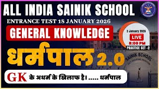 AISSEE 2026 GK | धर्मपाल 2.0 | GK के असली किलर प्रश्न 🔥 | PART 2| Sainik School Exam 18 Jan 2026
