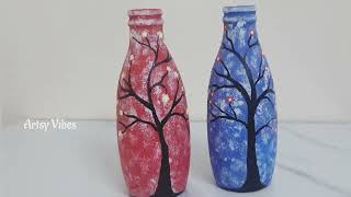 DIY Glass Bottle Art For Beginners/Simple,Quick & Easy Bottle Painting/Sauce Bottle reuse/Home decor