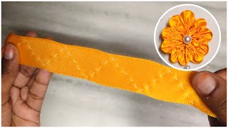 Super Easy Flower Making Idea with Fabric - Amazing Hand Embroidery Flower Design Trick -Sewing Hack