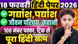18 फरवरी हिंदी के महत्वपूर्ण प्रश्न 2026,//Class 12 Hindi important question 2026//18 February Hindi