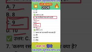 कक्षा 10 हिंदी महत्वपूर्ण बहुविकल्पीय प्रश्न। Up Board Objective Questions Hindi। #shorts #viral #up