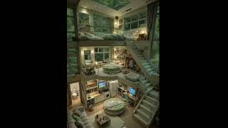 Elegant Loft with Cozy Pastels, Feature Lighting, and Nighttime CityViews#StylishSpaces #CozyCorners