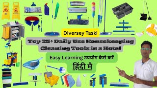 Top 25 Housekeeping Basic Cleaning Tools, Equipment List. Names & Uses, Step by Step in Hindi #hotel