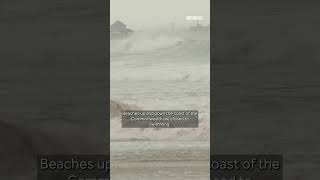 Powerful Wind, Large Waves From Hurricane Erin Pummel Beaches