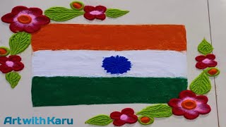 Easy Republic Day Rangoli/Simple Indian FlagRangoli/गणतंत्र दिवस/#shorts#rangoli#republicday#muggulu