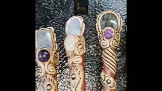 Hair stick made of using natural stone like Labradorites and other stones with clay on wooden stick.