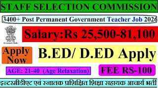 🏳🌈STAFF SELECTION COMMISSION 🎯 PERMANENT TEACHER JOB 2026 ✅📣SALARY:RS 25500-81000 /MONTH 🔴 #job2026