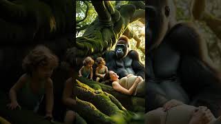 gorilla with wife in jungle#viral#subscribe#shorts#shortsvideos #junglebookstory#animationvideo#cute