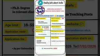 Kamdhenu University Teaching Recruitment 2026 | New Vacancy 2026 |Job Journey #shorts#sarkarunaukari