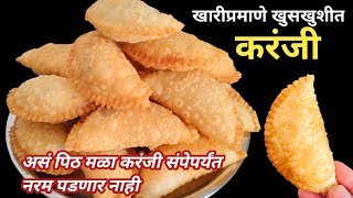 1किलो रवा मैद्याच्या प्रमाणात सारणाचं अगदी अचूकप्रमाण घेऊन शेवटपर्यंत खुशखुशीत राहणारी करंजी karanji