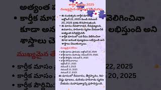 🌕 కార్తీక మాసం 2025 ముఖ్యమైన తేదీలు & పండుగలు | Kartika Masam 2025 Dates | Karthika Pournami Special