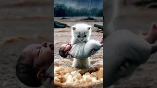 Kitten Rescues a Human Baby in Storm #shorts #viralvideo #wildliferescue #emotionalstory #fypyoutube