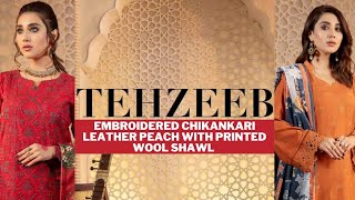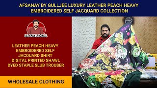 Afsanay by Gulljee - Luxury Leather Peach Heavy Embroidered Self Jacquard Collection | Factory Rates
