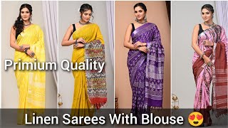Latest Linen Sarees With Price / New Colours In Linen Sarees Collection /Online Shopping /Pure Linen