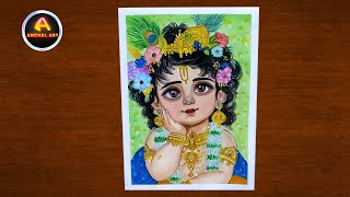 Baby Lord Krishna Oil Pastel Drawing | Easy Step by Step Art Tutorial. Janmashtami Special. LiGi Art