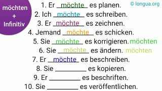 möchten - möchte, möchtest, möchten, möchtet - Infinitiv, planen, schreiben, zeichnen, schicken, kor