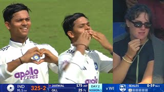 Yashasvi Jaiswal's girlfriend's sad reaction after he was run out for 175 in the Ind vs Wi 2nd Test.