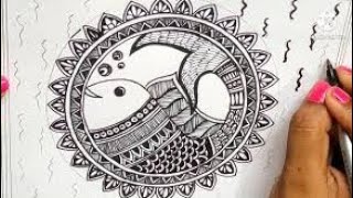 Madhubani Borders Fish Border #madhubanipainting #madhubanifish #mithilaarts #madhubaniborder #ytart