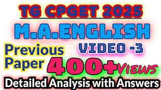 M.A. ENGLISH TG CPGET-2025 entrance exam (Video-3) PreviousYear Question Paper Analysis with answers