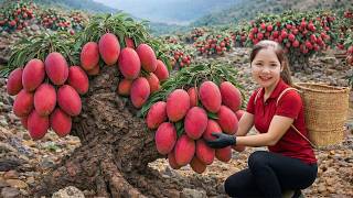 Harvesting Giant Rare Pink Mangoes & Making Traditional Spicy Sour Mango Salad | Sold Out in Minutes