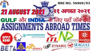 01 SEPT 2021 Assignment Abroad Times #JobNews #Gulf update. 01 सितम्बर 2021 असाइनमेंट अब्रॉड टाइम्स.