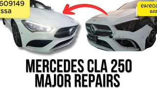 Mercedes CLA 250 2021 Major Front Repair: Bumper, Bonnet, Doors & Full Electrical Diagnosis in Dubai