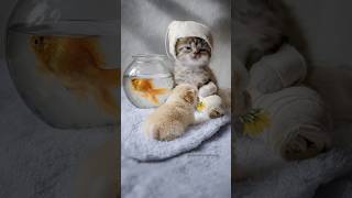 The kitten helps the injured bird and the duckling is curious #cat #kitten #catvideos #rescueefforts