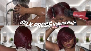 How to do a SILK PRESS on your NATURAL hair at home | (Bone Straight BLOWOUT & Straightening)