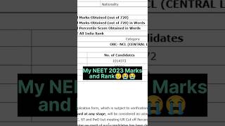 NEET 2023 UNEXPECTED RESULT 😞|NEET 2023 SCORE CARD #neet2023 #neet2024 #neetprep #mbbs #short #viral