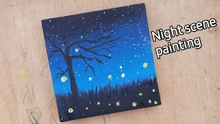Sky at Night / Easy Night Sky Lake Painting #painting #art #paintingtutorial #acrylicpainting#shorts