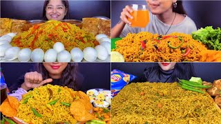 Asmr Eating 🔥 🌶 Indian Vegetables Maggie with Boiled Egg 🍟 Chips 😋👌Spicy Noodles Eating Mukbang Show