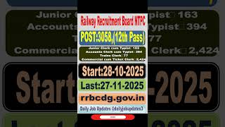 RRB NTPC Recruitment 2025-26 | 8850 Station Master, Clerk Posts | Apply Online #shorts #job #RRBNTPC