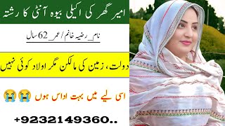 Latest Rishta Proposal For Razia Khanum |Age 62| Online Rishta Proposal |Widow Rishta |Rishta Sad 😭😭