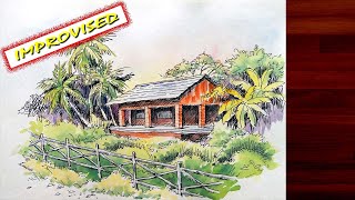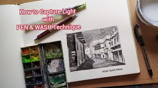 How to do Line and wash watercolor | Pen and wash | Ink and Wash | Easy watercolor painting tutorial