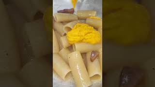 Il GrandeRitorno della Penna Liscia condita con la luganega e la cipolla rossa di Tropea.