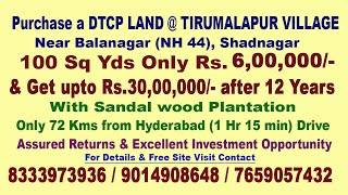 Buy DTCP Land @ Tirumalapur, Balanagar, Nr Shadnagar @ 4.9 Lakh & Get 30 Lakh in 12 Yrs - 8333973936
