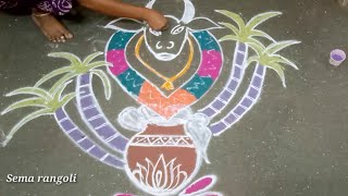 Pongal rangoli kolam special 2025🌺 Simple kolam🌺Thaipongal🌺New rangoli kolam 🌺Very easy🌺Sema rangoli